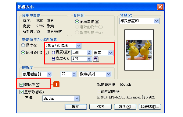 記得勾選「等比例」,這樣圖片調整後才不會變形喔!
