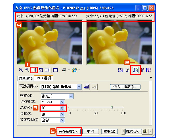 縮小完圖片後,接下來就是壓縮圖片囉!